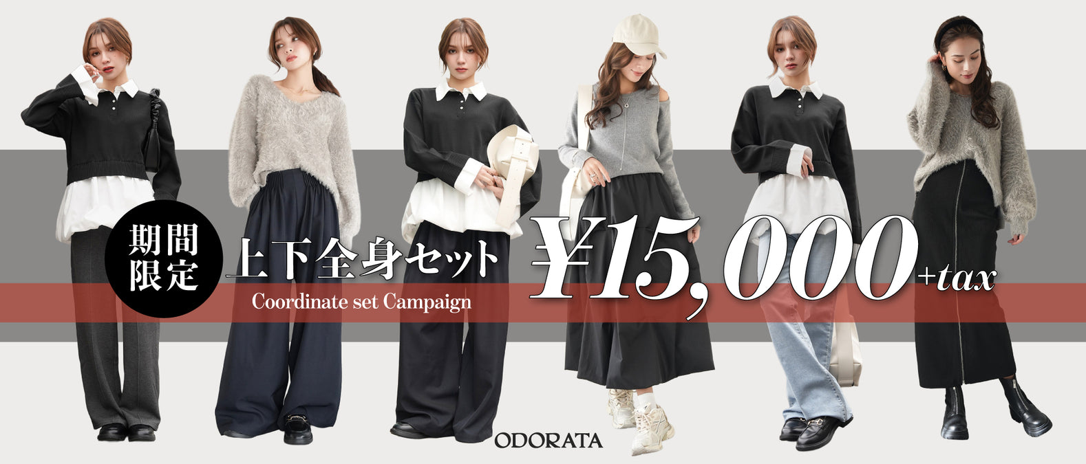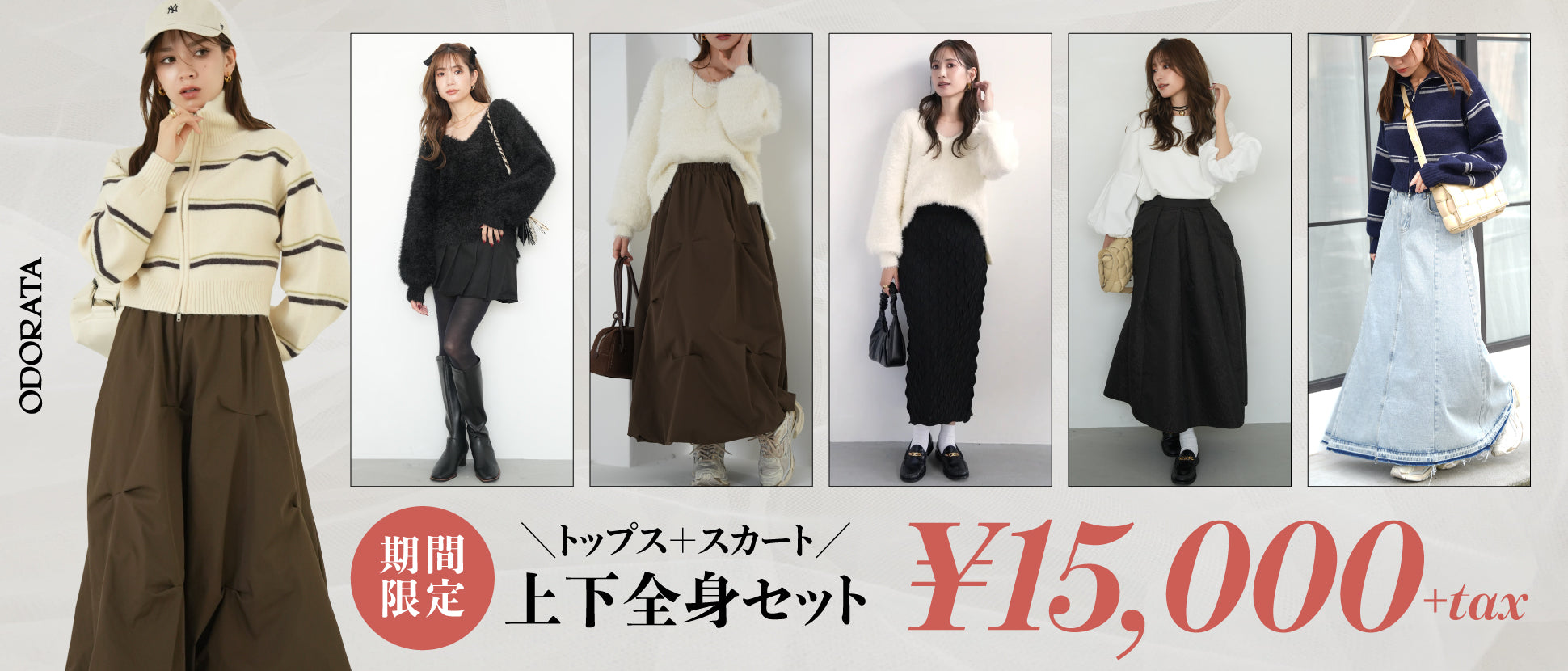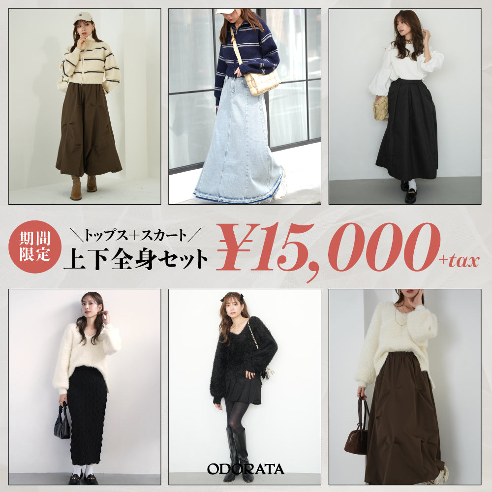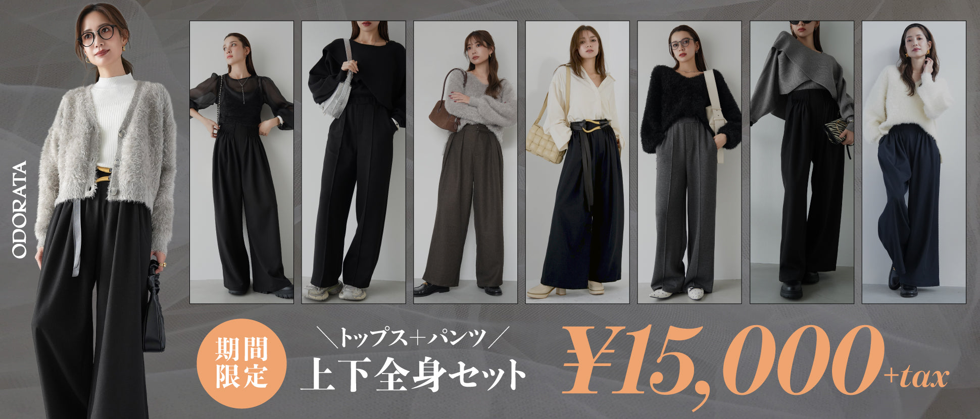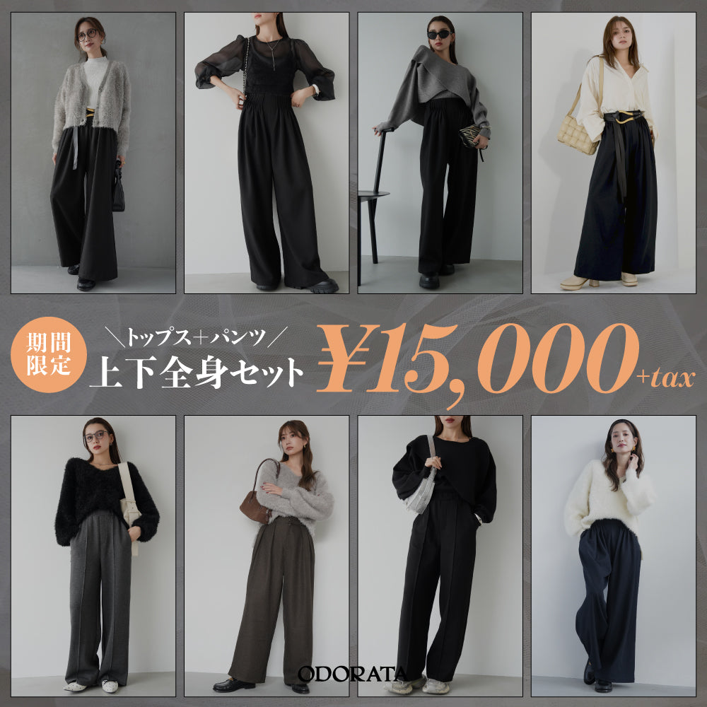 SET ITEMS 大人気TOPSとボトムスのSETで¥15,000(税抜き)のお得な企画!